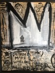 Kim Bell experimented with various painting techniques and struggled to find a solid interpretation of his artistic vision. One day he collected steering wheels from the junk yard in Detroit, MI and decided to paint one wheel all black and mount it on wood as a form of assemblage artistic expression. The all black steering wheel from a junk yard of Detroit represents the wheel of life, there is no way to reinvent the wheel, the wheel controls our direction and without direction we will never reach our destination in this journey we call Life. Therefore the conversation in this circle revolves around “Staying in Your Lane”. Everyone is a genius but if we judge a fish by its ability to climb a tree he will grow up his whole life believing he is stupid. Kim Bell’s art encourages everyone to find a lane to pursue and stick to it. Stay Focused. Life is a Marathon!